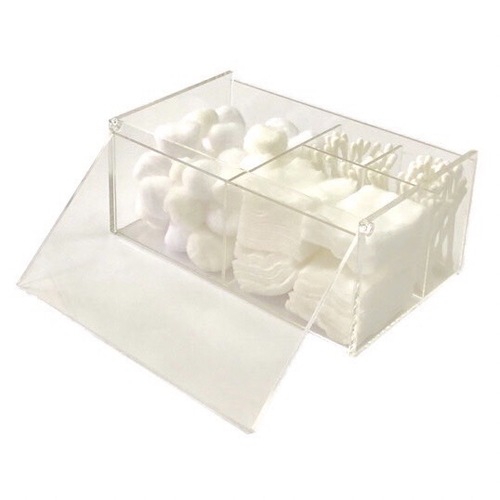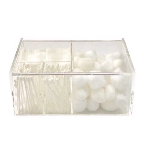 กล่องใส่สำลีและคัตตอนบัดสีใส CB-L SIZE 13 x 21 x 9 CM. แบ่งออกเป็น 4 ช่อง มีฝาปิด ตัวกล่องใช้อะคริลิคหนา 2.5 มิล ฝาด้านข้างกล่องใช้อะคริลิคหนา 5 มิล